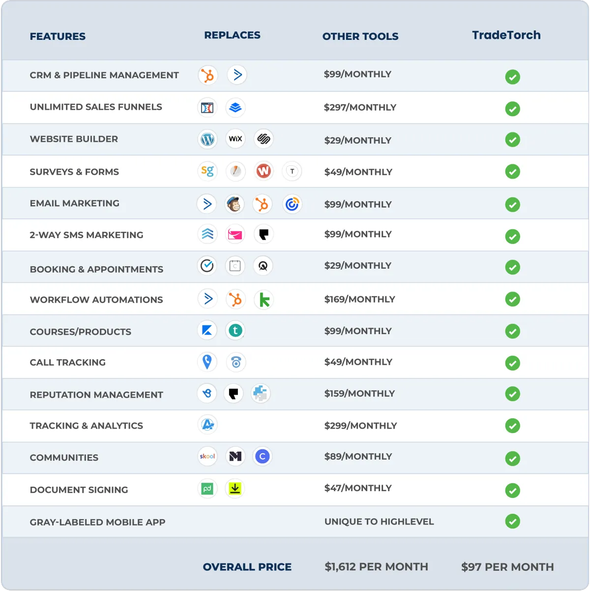 Yes, TradeTorch replaces your CRM and other tools. It keeps everything in one place and makes it simpler.